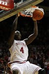 IU Sophomore guard Victor Oladipo slams a two handed dunk Sunday at Assembly Hall.