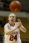 IU junior small forward Aulani Sinclair passes the ball up the floor Tuesday at Assembly Hall.