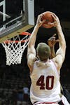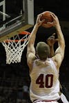 Freshman forward Cody Zeller slams in a two handed dunk over a University of Indianapolis player Saturday at Assembly Hall. IU beat UIndy 90-72.