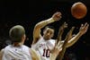 Sophomore forward Will Sheehey passes the ball to freshman forward Cody Zeller on Saturday in a game against University of Indianapolis at Assembly Hall. IU beat UIndy 90-72.