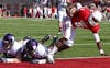 IU Freshman quarterback Tre Roberson avoids two Northwestern defenders to go in for a touchdown Saturday at Memorial Stadium.