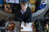 Blane, the chef for Peoples Cafe, prepares a vegetable dish Oct. 15 in People's Park.