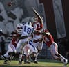 Senior safety Jarrell Drane drills the South Carolina State quarterback Sept. 17 at Memorial Stadium.