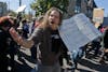Occupy Bloomington protesters yell out slogans during their march Saturday in downtown Bloomington.