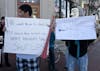 IU Sophomore John Kazemi (left) holds up a sign in counter protest of Occupy Bloomington Saturday in downtown Bloomington.