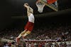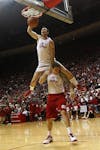 Junior forward Will Sheehey goes up for a two-handed dunk during Hoosier Hysteria on Saturday at Assembly Hall. Sheehey won this year's dunk contest.