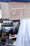 Blane prepares a vegetable dish Saturday in People's Park. Blane is the chef for "People's Cafe" and said there have been generous produce donations given to help feed Occupy Bloomington protesters.