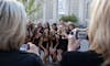 Ladies of Zeta Tau Alpha pose for pictures outside before Big Man on Campus on Friday at the IU Auditorium.