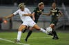 Sophomore forward Eriq Zavaleta tries to get the ball away from an Irish defender Sept. 26 at Bill Armstrong Stadium.