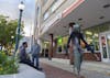 People watch as Reilly Donaldson walks down the sidewalk in his "Skeleton Harvester" costume Oct. 20 on Kirkwood Avenue. Throughout his walks, people often stop him to take selfies with him in his costume.