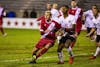 Sophomore midfielder Justin Rennicks attempts to win the ball against junior Bulldogs midfielder Derek Sutton on Oct. 16 at Bill Armstrong Stadium.