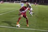 Freshman defender Jack Maher holds off junior Butler midfielder Adam Burch while attempting to win the ball Oct. 16 at Bill Armstrong Stadium. IU defeated Butler, 3-0.