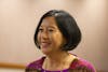 Lianne Kowiak smiles before talking to sorority and fraternity members about greek life and hazing Oct. 14 in Ballentine Hall.