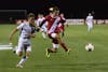 Sophomore defender A.J. Palazzolo attempts to break free from two Northwestern University players Sept. 26 at Bill Armstrong Stadium. IU defeated NU, 2-1.
