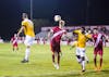 Senior defender Andrew Gutman jumps to head the ball during IU's game against Butler on Oct. 16 at Bill Armstrong Stadium. IU defeated Butler, 3-0, with sophomore Justin Rennicks, senior Timmy Mehl and sophomore Spencer Glass all scoring on the night.