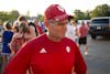 Tom Allen talks about IU student football manager Matt Stauder during a benefit Sept. 20 in the parking lot of Wagon Wheel Custom Meats. The local business hosted the benefit for Stauder who was diagnosed with Hodgkin lymphoma in April.