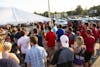 Benefit attendees listen while attorney Carl Lamb talks about IU student football manager Matt Stauder on Sept. 20 in the parking lot of Wagon Wheel Custom Meats. Stauder was diagnosed with Hodgkin lymphoma in April.