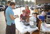 Sophomore Ryan Hoffman, left, donates money at the benefit for IU student football manager Mike Stauder on Sept. 20 in the parking lot of Wagon Wheel Custom Meats. The benefit, which was hosted by the local business for Stauder who was diagnosed with Hodgkin's Lymphoma in April, featured food and music.