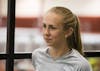Junior Lexa Barrott laces up her sneakers before the start of track and field practice Friday afternoon in Gladstein Fieldhouse. Barrott, a distance runner, ran as an alternate in the Big Ten Championships during the 2016-17 season.