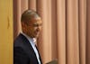 Current Indiana Poet Laureate Adrian Matejka laughs after being mentioned by Jonathan Elmer, director of the College Arts and Humanities Institute, at a poetry reading Thursday evening in the Neal-Marshall Black Culture Center. Matejka is a current associate professor at IU.