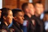 IU Police Officers stand Aug. 11 after receiving their badges at the 45th IU Police Academy graduation in Alumni Hall in the Indiana Memorial Union.