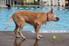 A basket of tennis balls sits poolside Aug. 8 during the Drool in the Pool event at Mills Swimming Pool.