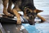 Gunter Borkhausen, a 3-year-old German shepherd, looks toward his owner Aug. 9 at the Drool in the Pool event at Mills Swimming Pool.