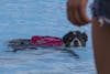 Sophie, an 11-year-old labrador, gets petted by her owner after getting out of the pool Aug. 9 at the Drool in the Pool event at Mills Swimming Pool.