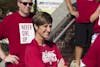 Teri Moren, the IU women’s basketball coach, left, pours water on herself for the ALS ice bucket challenge alongside Mayor John Hamilton and over 30 others Saturday morning on the steps of City Hall. In 2014, almost two months after Moren took the IU women’s basketball head coaching position, Moren’s mother, Barb, died of ALS.