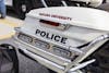 The IU Police Department crest can be seen on the gas tank of one of the new IUPD motorcycles at the “Touch a Truck” event Monday in the Chick-fil-A parking lot at 3020 E. Third St.