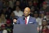Indiana Attorney General Curtis Hill talks to the crowd during the Donald Trump rally May 10, in Elkhart, Indiana.