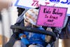 A child holds a sign that reads “Kids Belong In Arms NOT Cages!” at the #FamiliesBelongTogether rally Saturday morning outside the Monroe County Courthouse.