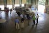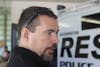Mayor John Hamilton arrives at the first public viewing of the Bloomington Police Department’s new armored vehicle July 10 in the Switchyard Operations building.