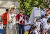 Christine Popp, a Bloomington immigration attorney, speaks during the #FamiliesBelongTogether rally Saturday morning outside the Monroe County Courthouse.