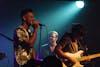 Singer Dexter Clardy, left, bassist Matt McConahay, center, and guitarist Mike Gronsky, right, of Huckleberry Funk perform Wednesday night at Bluebird Nightclub.