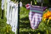 Children's clothes hang by clothespins Saturday morning during the #FamiliesBelongTogether rally outside the Monroe County Courthouse. The clothes represent the immigrant children who have been separated from their families at the U.S.-Mexico border due to the Trump administration’s zero-tolerance immigration policy.
