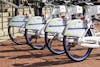 Pace bicycles with fenders advertising the Pace app stand Wednesday, June 20, outside City Hall. Pace, a dockless bike share service operated by the company Zagster, showcased the new smart bikes which will be available to residents, students and visitors starting this month.