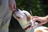 A one-year-old Shar-Pei-Pitbull mix, Spike, smells a volunteer's hand before the ribbon-cutting ceremony Tuesday, June 5, at the Bloomington Animal Shelter. The event was the official opening of the newly renovated animal shelter.