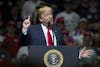 President Donald Trump holds out his hands during a rally Thursday, May 10, at Northside Middle School in Elkhart, Indiana. Trump met with North Korea’s Kim Jong-un on Tuesday, June 12, for a summit in Singapore.
