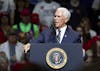 Vice President Mike Pence speaks to supporters at a Donald Trump rally Thursday, May 10, at North Side Middle School in Elkhart, Indiana. Pence's speech included talk about the upcoming primaries in November.