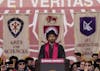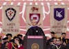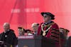 President Michael McRobbie addresses the graduating class of 2018 during the spring commencement for undergraduates. The event took place Saturday, May 5, at Memorial Stadium.