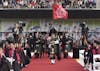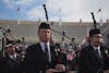 Bagpipers file down the aisle at the start of the 2018 spring undergraduate commencement ceremony Saturday, May 5, at Memorial Stadium.