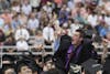 Undergraduates clap toward the end of the 2018 spring undergraduate commencement Saturday, May 5, at Memorial Stadium.