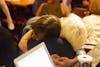 Liz Watson hugs a supporter Tuesday, May 8, inside Nick's English Hut. Watson's campaign had a vote count party inside Nick's English Hut to watch votes come in.
