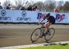 An Alpha Chi Omega cyclist rounds turn 3 during the women’s Little 500 on Friday, April 20, at Bill Armstrong Stadium.