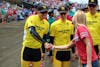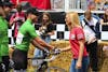 Senior Tyra Buss shakes hands with the Black Key Bulls cycling team at the men’s Little 500 on Saturday, April 21, at Bill Armstrong Stadium. Tyra Buss was part of the winning IU women’s basketball team in the WNIT Championship.