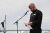 Father Joseph Minuth gives opening remarks and leads the crowd in a moment of silence before the start of the men’s Little 500. Minuth also spoke at the women’s Little 500 on Friday, April 20, the day before.