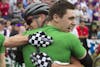 Noble Guyon, left, embraces one of his team members, Patrick Coulter. Cutters won the 2018 men’s Little 500.