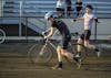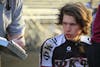 A rider prepares to resume practice for Little 500 after a collision led to the practice being postponed. Little 500 practice took place Thursday, April 12, at Bill Armstrong Stadium.