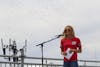 Senior Tyra Buss, who was grand marshal for the race, tells the riders they can mount their bikes to officially start the men’s Little 500.
